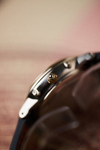 The movement is running superbly following a recent service, performing at 0 seconds per day, 283 amplitude, and a 0.2ms beat error. We’ve paired the watch, along with its original gold buckle, with a beautiful navy Saffiano leather strap. We've been fortunate to have handled a few of these just in the last few weeks - such beauties.