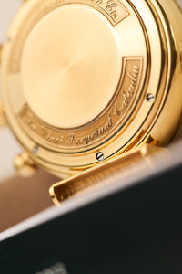 Few complications in horology possess the sheer poetry of a perpetual calendar, and fewer still bear the unmistakable fingerprints of a single visionary. The present example, the IWC IW3758-11, is not only a perpetual calendar chronograph, but the continuation of an idea first set into motion by the great Kurt Klaus. The legendary watchmaker from IWC created an ingenious perpetual calendar system, which does not require the tangle of correctors and independent adjusters (with the help of a cocktail stick, as many perpetual calendar owners would know...) to set; it is mechanically programmed to be controlled entirely via the crown. Astonishingly, the module calculates the lengths of months, leap years, and even century jumps automatically, with no need for manual intervention beyond occasional winding.