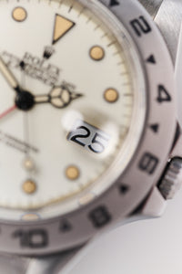 Despite its short four-year production run, the 16550 went through several dial variations. Early examples featured white-gold surrounds (WGS) on the hour markers, while later ones switched to black surrounds. By far the most desirable are the so-called “cream dial” versions. Due to a manufacturing imperfection, the dials on certain 16550s aged to a striking creamy tone—most commonly seen on WGS examples.