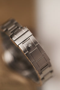 This example is in fantastic shape, with a case that has seen minimal polishing, a blemish-free dial, and a lovely Mk5 insert that has faded to a desirable petrol blue. The hands show some minor marks to the chrome, though these are invisible to the naked eye. The original F-stamped (1981) bracelet, matching the year of sale, is still present and, despite being one link short, will comfortably accommodate a 19.5 cm wrist.