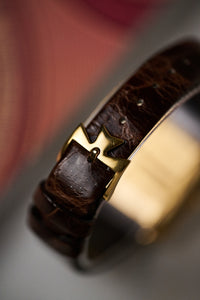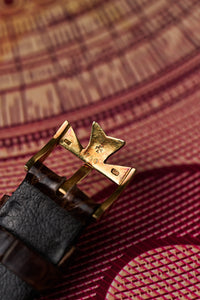 The watch is powered by the manual-wind Caliber 1132.1, recently serviced and running at +6 seconds per day with 270 amplitude and a 0.3 ms beat error. It comes with its solid 18k gold buckle and brown exotic leather strap. For dressier occasions, or simply as a distinctive step away from the mainstream, you’ll be hard-pressed to find a more elegant companion.